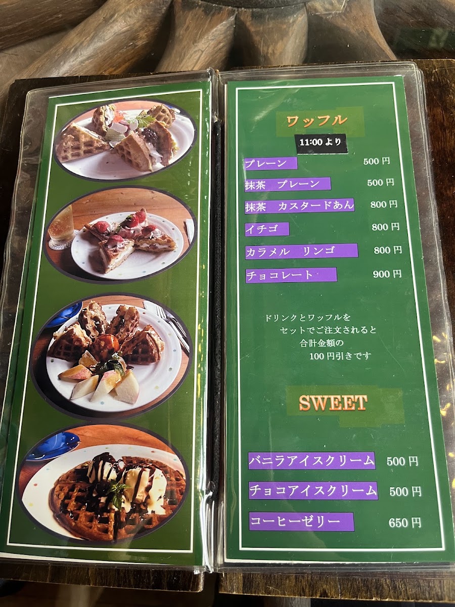 Welcome to Cafe Charango, a charming coffee shop nestled in a picturesque log cabin setting in Soja, Okayama. For over 30 years, this beloved cafe has offered a cozy retreat with its warm ambiance and stunning views of the surrounding countryside. Step inside and enjoy a delightful selection of menu offerings, prominently featuring their signature Belgian-style waffles.